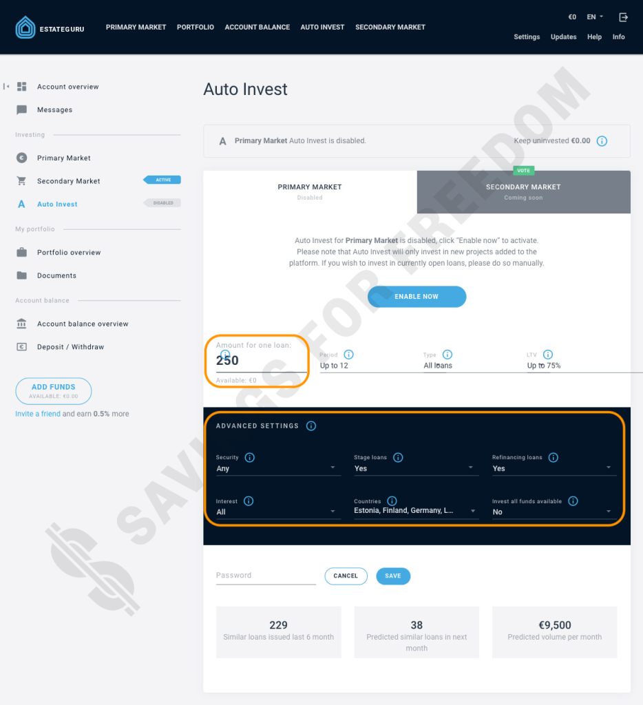 Note that you need to have enough funds on your EstateGuru account to activate the Auto Invest tool, if you don’t it will keep the status as pending.